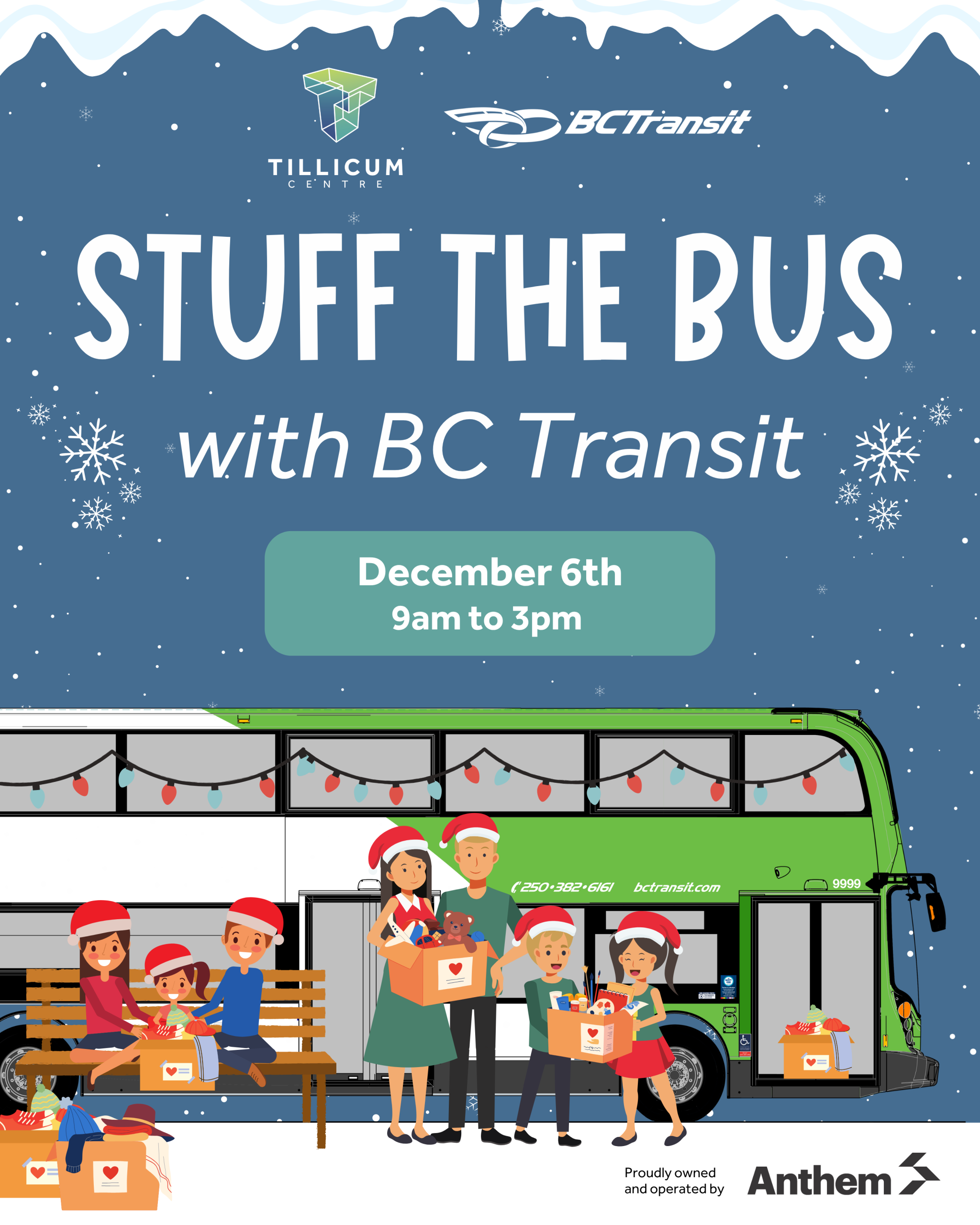It is the season of giving and we welcome back the annual BC Transit Stuff the Bus campaign. Donations can be accepted with non-perishable foods, new/un-used toys, clothing, and cash donations.